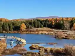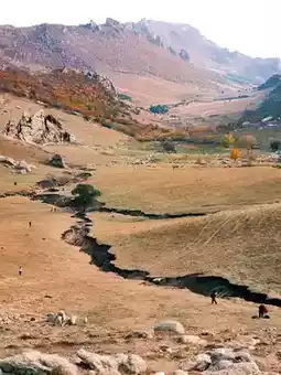 A winding stream at the valley bottom, with birch and pine trees changing colors on both sides. In autumn, it looks like a golden dragon. Hiking or horseback riding deep inside is very healing~