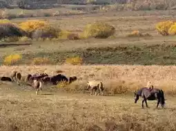 Ancient battlefield site, lush water plants in autumn, horses grazing by the lake. When the morning mist rises, it looks like an ink painting. Horseback riding up the slopes is super thrilling~