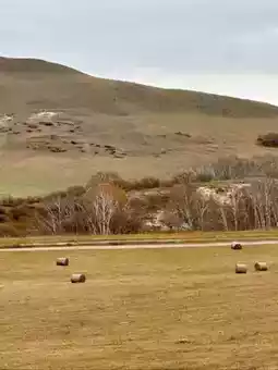 Filming location for "My Fair Princess" and "Wolf Totem." Golden haystacks dot the grassland, distant mountains are covered in colorful forests, perfect for capturing epic "wilderness" shots~