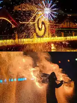 ✅ Black Forest Square "Flying Fire Pot" 🔥 The fire chain performance is super shocking, and the bonfire electronic music party directly ignites the whole place. Jump to the rhythm, and adrenaline soars ⬆️