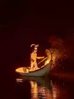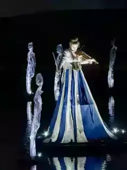 "Floating Shadow Thoughts" is also very poetic and interesting, a tribute to light and life~I watched it twice; the first time I didn’t understand it, just found it fascinating: transparent human figures floating on water, a musician moving through the water, two flame creatures playing in the waves. Later, after carefully reading its introduction and watching again, I gained new insights! Using poetic landscape installations and contemplative melodies, it invites people to rethink the symbiosis between humans and the environment.