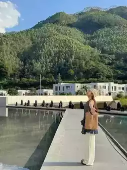 2. Recommend wearing solid color long dresses, white and beige are very photogenic