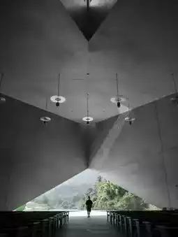 With a 12-meter-high space, sunlight pours through the skylight, following the geometric contours of the building, cutting out the boundary between light and shadow. The entrance reserved for light is like "life has cracks, and that's how the light gets in." Tadao Ando's design indeed hides philosophy.
