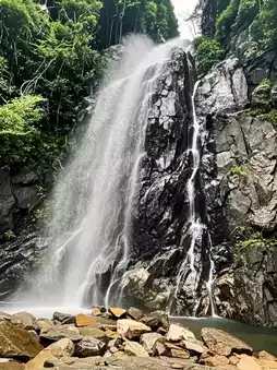 Running Horse Waterfall captures the eye with its tiered, staircase-like cascades, creating a mesmerizing spectacle of flowing water. The surrounding mist adds an ethereal touch, as if the waterfall itself dances in harmony with the air.