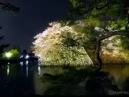 The daytime view is beautiful, but the cherry blossoms lit up at night during the cherry blossom viewing season are a spectacular sight.