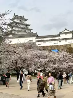 When the cherry blossoms are in full bloom, the white walls of Himeji Castle and the pink cherry blossoms form a beautiful contrast, as if you are in a dreamy sea of flowers. Especially when they are in full bloom, the entire city is surrounded by light pink flowers, attracting a large number of tourists to take photos.