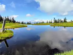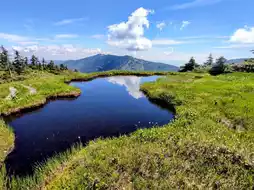 It is a course of about 1 hour to slowly go down the gentle ridge from the top of the mountain to Mt. Nakamon. If you go ahead while looking at the Nakamon Oike, you will reach the top of Mt. Nakamon, which is the final point of climbing Mt. Aizu Komagatake around the quiet wetland.