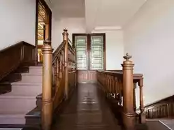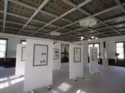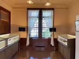 The building, adorned with white and mint green, is elegant and beautiful. The interior is open to the public, allowing visitors to fully immerse themselves in the classic décor. The most striking feature is the beautiful gold-colored paper adorning the ceiling. Numerous historical banknotes and currencies are also on display.
