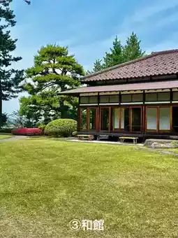 The upland garden is a borrowed landscape garden overlooking Mount Iwaki. It includes a Western-style building, a Japanese-style building, and an archaeological museum, all of which are registered tangible cultural properties.