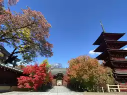 Saishoin Temple in Hirosaki City, Aomori Prefecture, is renowned for its iconic five-story pagoda, the tallest in the Tohoku region. In autumn, the temple grounds are adorned with vibrant red and yellow foliage, creating a breathtaking scene as the majestic pagoda stands amidst the vivid autumn colors.