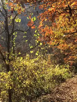 We entered a cedar forest immediately from the trailhead, and the air was cool and refreshing! The autumn foliage is also spectacular. 😀