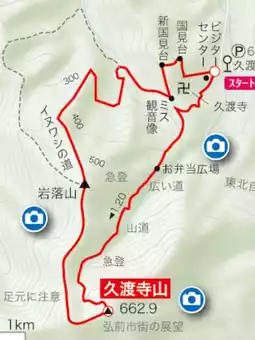 Kudojiyama, located in the southwest of Hirosaki City, adjacent to Children's Forest, is a 663m-high rural mountain. It's about a 30-minute drive from downtown Hirosaki.