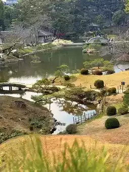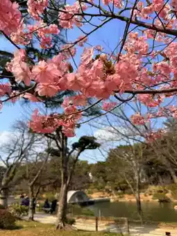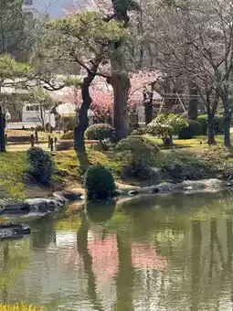 An early cherry blossom is in full bloom at the main entrance, while a whole row of plum trees on the south side are also in full bloom, emitting a light and elegant fragrance. The elegance of the feudal lords in the past, the prosperity after several generations, and the sorrow of disasters, Shukkeien has now become a part of Hiroshima's history, allowing tourists from all over the world to appreciate and relive the historical stories.