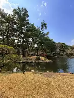 In 1620, Asano Nagamori, the first lord of Hiroshima Domain, started building a garden. At that time, it was actually called Izumi-yashiki. His retainer, who was also a tea ceremony master, Ueda Muneko, planned and built this garden for the lord. He used the rainbow bridge to divide the water of Zhuoying Pond into two areas, east and west. He built a rockery on the north, west and east sides, named Zongge Mountain, Futaba Mountain and Mishan, and used borrowed scenery to create an elegant atmosphere for the courtyard. It is rumored that it was built in imitation of China's West Lake. After several generations of reconstruction and renovation by the Asano domain lords, it has reached its current size.