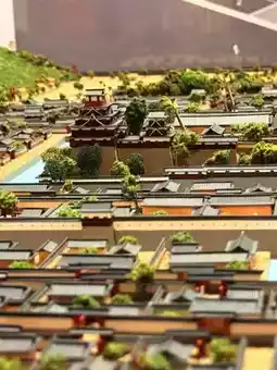 The castle tower displays the history of the Mori clan and the Asano clan, as well as miniatures of the various towns in Hiroshima Castle. Because the castle was founded by a famous general from the Warring States period, knives and sword handles are also displayed inside, showing the general's spirit.