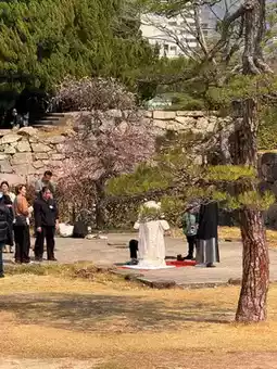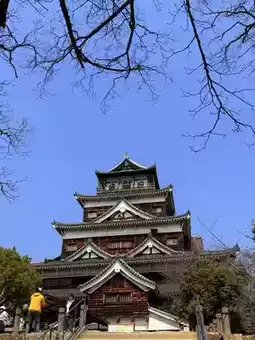 During the Sino-Japanese War, this place was the Hiroshima headquarters, the emperor was stationed here, and it became the temporary capital. In 1945, Hiroshima Castle was completely destroyed in the atomic bombing of Hiroshima. The castle tower with its scorched cedar and white walls that we see today was actually rebuilt in 1958. In 1994, the Ninomaru-daira turret and Tamon turret were restored. However, due to earthquake resistance issues, Hiroshima is discussing rebuilding the castle tower, and judging from what we see now, there may not be much time left.