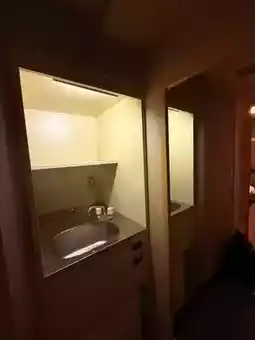 If Onyado Nono from the same group is purely Japanese style, then Domio is a mix of Japanese and Western styles. It has a bit of the flavor of Edo and Showa. The bed uses a serta mattress and is comfortable to sleep on. The room and the passageway are made of wood in a stable style. The bathroom is not big, but there is a small bar outside the bathroom.