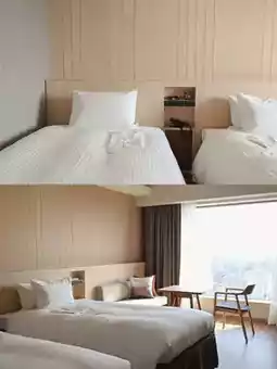The South Gate Twin room is particularly spacious and has a cozy space with a harmonious blend of Maruni Woodworking furniture and carefully selected flooring.