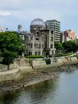 The Hiroshima Peace Memorial (Genbaku Dome) was the only structure left standing in the area where the first atomic bomb exploded on 6 August 1945.
