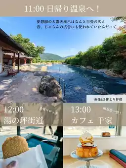 12:00 Eat your way around Yunotsubo Kaido - the gold medal croquettes are a must-try! 13:00 Take a break at the hidden gem cafe "Senke" while looking at Mt. Yufu