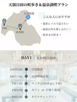 Here's a two-day, one-night trip to Hita City, home to Mamedamachi, a merchant town that flourished as a shogunate territory during the Edo period, and everyone's favorite Yufuin Onsen! ..........................................