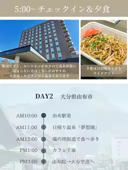 15:00 Head to Oita Airport (Yufuin bus stop ▷ Express bus to Oita Airport) ..............................................