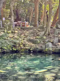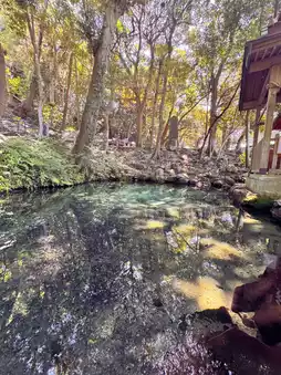 A beautiful emerald green spring🫧 I would like to introduce "Izumigamori" located at the back of the temple grounds, as it is a very mysterious spring!!