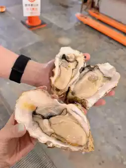 At the market, you can eat raw oysters that are opened on the spot🤍They are large and reasonably priced😆