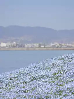 Only about a 2-hour drive from Tokyo, this park becomes a dreamy sea of blue from April to May with over 5 million Nemophila flowers carpeting the hills.
