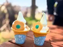 (Sold at stalls and restaurants within the park, available in soda and milk flavors. The Nemophila-shaped cookie on top is irresistibly cute🍪.)