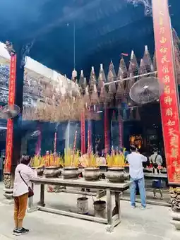 The architecture of Thien Hau Temple is significantly influenced by Chinese culture as we can see many Chinese words & lantern 🏮 in the temple
