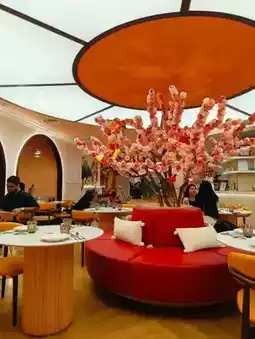 This café was like stepping into a pastel dream—bright, warm, and beautifully decorated with fruit-inspired murals and cozy seating areas. The attention to detail in the décor made it feel so refreshing and uplifting.