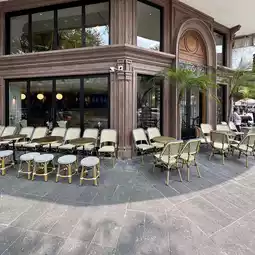 The new space of Cheese coffee at the corner of Nguyen Trung Truc & Le Thanh Ton streets is quite cute. Not that many seats inside though. The restaurant has only one floor with around 10 small tables. It's quite nice to have a view from the street corner. It's quite reasonable to sit outside from the afternoon to evening. If you come to send the car, ask the staff for guidance.