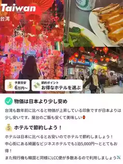 Hotel prices are cheaper than in Japan and the cost performance is good! It's good value for money to eat at food stalls in night markets instead of restaurants ☺️