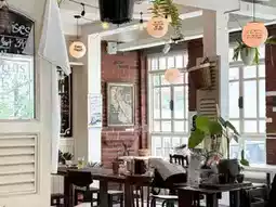 A cafe that has only the words cute, minimal, delicious desserts, good drinks.