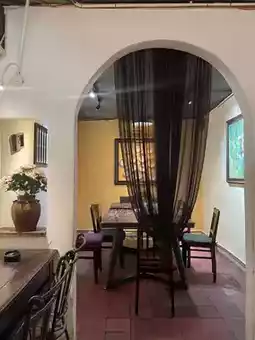 The atmosphere is very good. We went at 8 am and every table was full. The owner is cute and friendly. Opening hours 07:00-21:30.
