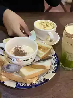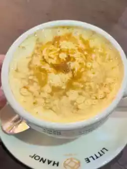 Egg coffee that anyone who goes to Ho Chi Minh City must try at least once. The shop is called Little Hanoi Egg Coffee. It is a cafe that is very popular with foreigners. There are many menus of drinks and desserts. The signature menu of this shop is egg coffee. We can't imagine the taste, but when we tried it, we were hooked. It's very delicious and creamy. It goes well with black coffee. It's not as hard to eat as we thought.