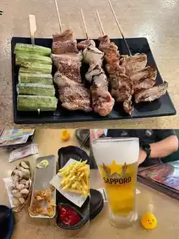 This restaurant is part of a chain and offers a very cozy dining environment with two floors of seating. We tried their signature skewer platter, which included grilled dried fish, fried chicken cartilage, French fries, and more. Every bite was packed with authentic Japanese flavors. Even better, they had a buy-one-get-one-free deal on frozen beer, making it an incredible value! 🍢🍗🍟