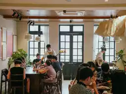 The space spans 3 floors, each floor is carefully taken care of. The 1st floor is the area for ordering food and tables near the window, the 2nd floor is quiet and warm - extremely suitable for chatting, drinking coffee, and the 3rd floor is for large tables, groups of guests, with lots of trees and an ideal sitting corner to meet friends or sit and work.