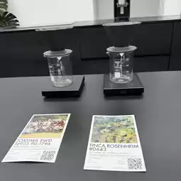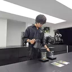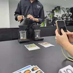 Upstairs, the experience continues in a sleek, all-black tasting room where coffee is treated like fine art. I tried Tokuma SWD from Ethiopia and Finca Rosenheim from Peru, both carefully hand-brewed and served with a story. Each sip was smooth and layered — a true journey in flavor.