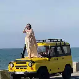 📸 The peak is the princess look in the middle of the desert on a yellow jeep by the sea! Feel the sea-Sahara-Fashion Week in one trip