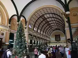 Stepping into Saigon Central Post Office felt like entering a bygone era. Located just steps from Notre Dame Cathedral, the building’s grand arches, elegant wooden detailing, and soaring vaulted ceilings immediately transported me to early 20th-century Saigon.
