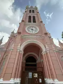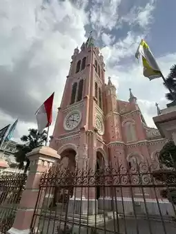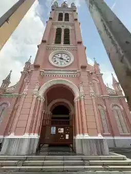 Located in District 3 of Ho Chi Minh City, "Tan Dinh Church" is a Catholic church with a striking pink exterior that makes it a photogenic spot⛪️.