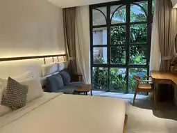 📸 Don't miss the garden pool filled with palm trees and the terrace photo spots in the rooms