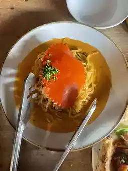 For the pizza, we ordered the half pizza, which had 4 cheeses and burrata and Parma ham. This was a great point, as the portions were quite large and the variety of toppings allowed for a variety of choices. We also ordered the crab spaghetti, which was delicious. I ate a lot and it was a bit greasy, so I had to add some chili oil to help.