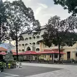 Besides the beautiful church, the surrounding buildings are equally stunning, with their egg-colored, rich tones. The surrounding area is lined with large trees and plenty of benches for relaxing. This is a great place to admire the architecture, relax, or even take photos to cherish as memories. #Ho Chi Minh #Vietnam