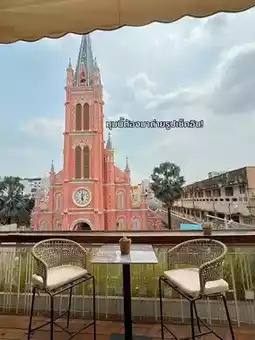 #VietnamTravel: Here's the location of this Vietnamese cafe with a stunning view. You have to check it out! Located right across from the Pink Church, it's a great place to take photos. They have a full range of food and drinks. The cafe is quite large and spread across several floors. Food doesn't take long to arrive, and the staff speaks English. The portions are generous, so you'll be full. I highly recommend this place. The coffee is also delicious. It's located in the city and easy to get to.
