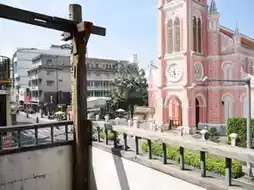 Ho Chi Minh Cafe with a view of the Pink Church ☕️🇻🇳