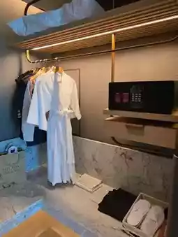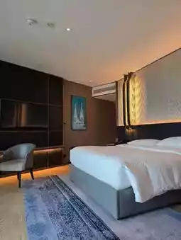 The king-size rooms impress with their modern design and spaciousness—39 square meters of comfortable space with panoramic windows and city views. Elegant bathrooms with large windows create a feeling of lightness and freedom. Complimentary Wi-Fi, air conditioning, and everything you need for a comfortable stay are included.
