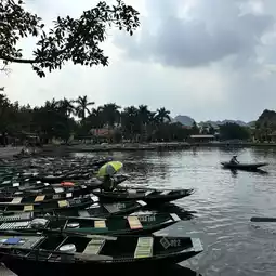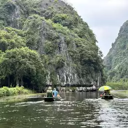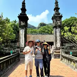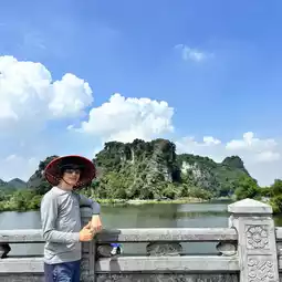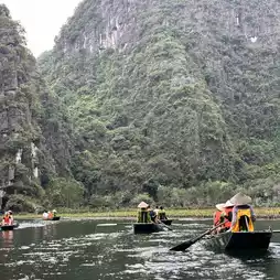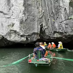 I originally planned to rent a motorcycle for a day trip to Ninh Binh, but after experiencing the traffic in Hanoi city, I was glad that I chose to join the local tour's luxury bus day tour. Lu Long Bay in Ninh Binh Province is famous for its spectacular limestone peaks, caves and rice fields. Hoa Lu was the capital of Vietnam in the 10th century. Although the old city no longer exists, there are still some ruins and temples that bear witness to this period of history. Tam coc in Lulong Bay Scenic Area means "three caves", namely Hang Ca, Hang Hai and Hang Ba, all located on the Ngo Dong River and now listed as a World Heritage Site by UNESCO. The two of us sat in a small boat, one in front and one behind, with the boatman rowing with his feet, starting from Van Lam Pier, enjoying the unique karst topography and beautiful rice field landscape along the way. The limestone caves we entered were lower than one another, and the caves were dark and rugged, but the boatman could accurately control the direction of travel. Passengers should also pay attention to the rocks above their heads and lie down to avoid them. After exiting the cave, it felt like arriving in a paradise, with a feeling of "walking through stone caves with green peaks, suddenly seeing flowers and willows welcoming you". The scenery on both sides changed from endless to surrounded by mountains, as if being in the artistic conception of an ancient poem "the mountains are continuous and the sound is endless, the light boat has passed the green peaks".